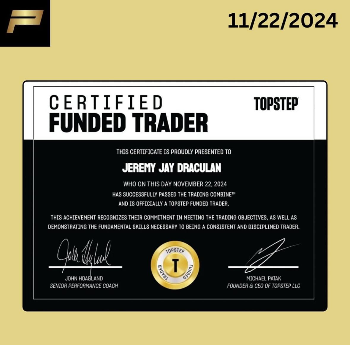 Jeremy followed each of the rules to the system and was able to scale his evaluation account quick to turn pro!